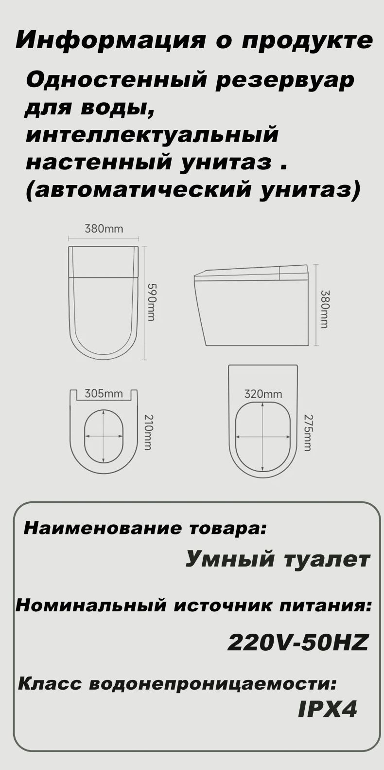 Унитаз умный настенный MEISHIDA-204, 59см, автомат, бачок