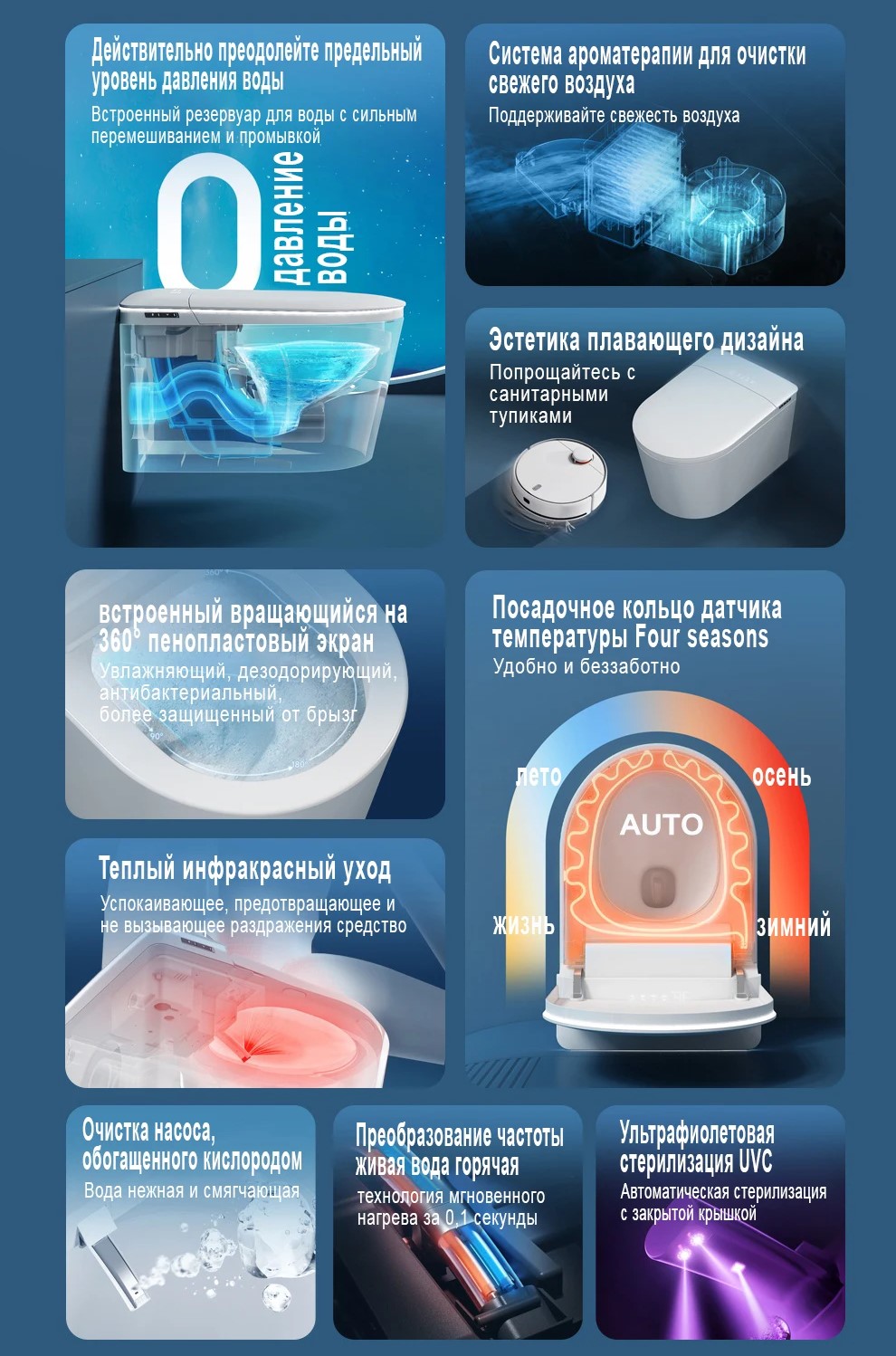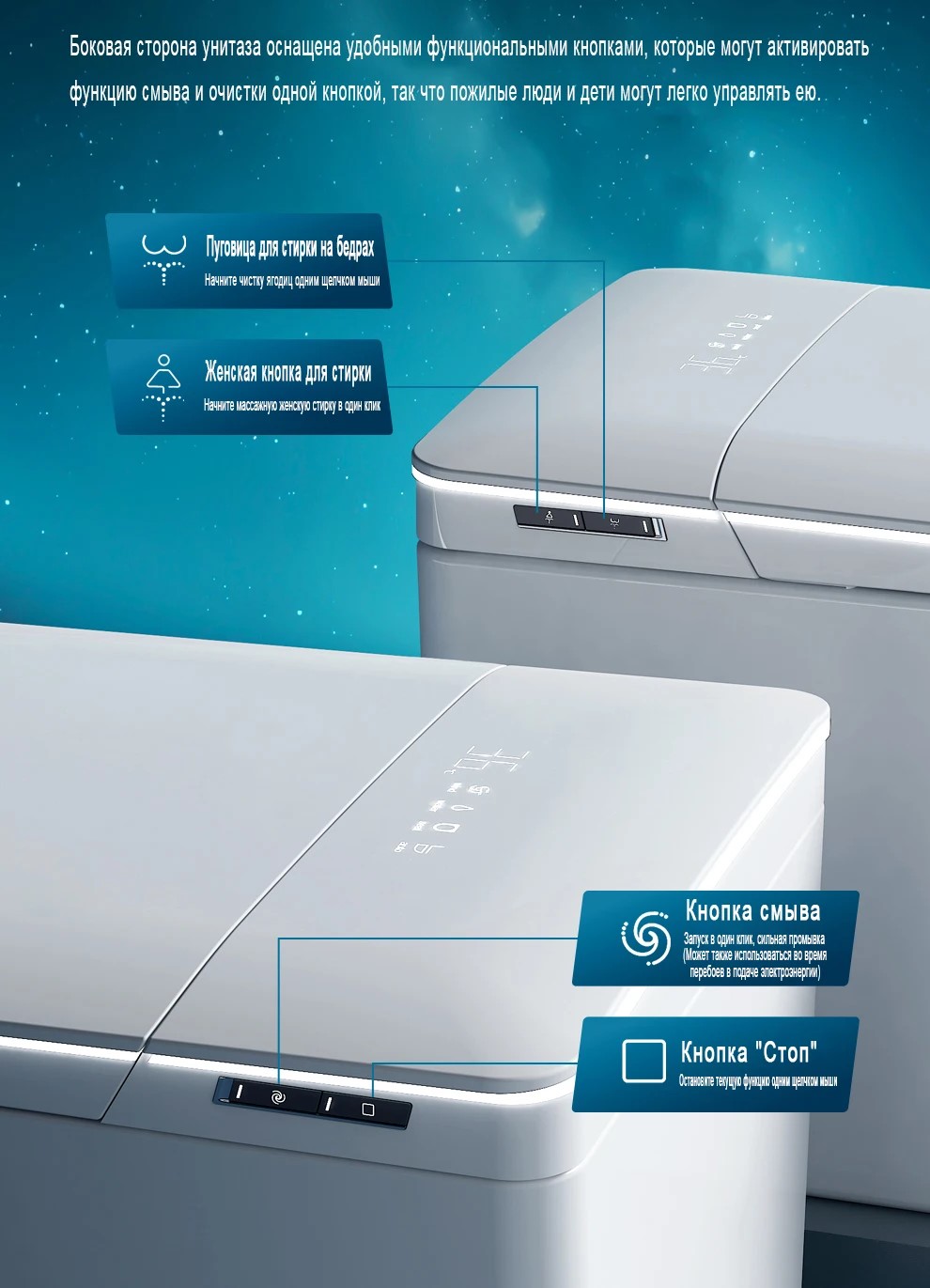 Унитаз умный настенный MEISHIDA-G59HP, 59.5см, ароматизаторХит!Оставить отзывВ избранноеВ сравнение Артикул: G59HP 59.5см, автомат, резервуар, пенообразователь, ароматизаторПодробное описаниеОсновныеТорговая маркаMEISHIDAНаправление выпускаПодвеснойОпцииАвтоматическое поднятие крышки, Авто подогрев сиденья, Ароматерапия и дезодорация, Атмосферное освещение, Инфрокрасная светотерапия, Ультрафиолетовая стерилизацияРезервуарРезервуар с компрессоромРезервуар пенообразователяВстроенныйПульт управленияС дисплеемНапряжение220 ВМощность1350 ВтУровень водонепроницаемости :IPX4ЦветБелыйПроизводствоКитайВес43 кгГарантия производителя12 мес. Доставка по РФ +1 ₽ 52 999 ₽ 99 999 ₽ -48% FBO / Aliexpress: В наличии FBS / СВХ Логистический терминал (для регионов РФ): В наличии FBS / Красноярск: Осталось несколько штук – + Бонус: 2649.95 ! Начисляем кешбек !!! Итого: 52 999 ₽ Купить Обзоркупить на AliExpress (цены на площадке могут быть разными в период акций, установлены не нами) ХарактеристикиОсновныеТорговая маркаMEISHIDAНаправление выпускаПодвеснойОпцииАвтоматическое поднятие крышки, Авто подогрев сиденья, Ароматерапия и дезодорация, Атмосферное освещение, Инфрокрасная светотерапия, Ультрафиолетовая стерилизацияРезервуарРезервуар с компрессоромРезервуар пенообразователяВстроенныйПульт управленияС дисплеемНапряжение220 ВМощность1350 ВтУровень водонепроницаемости :IPX4ЦветБелыйПроизводствоКитайВес43 кгГарантия производителя12 мес.Отзывы 00.0общая оценкаВсего 0 отзывов0 отзывов0 отзывов0 отзывов0 отзывов0 отзывовОтзывов нет