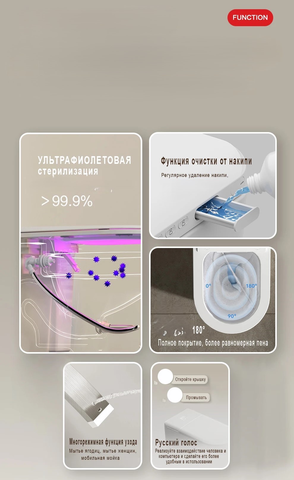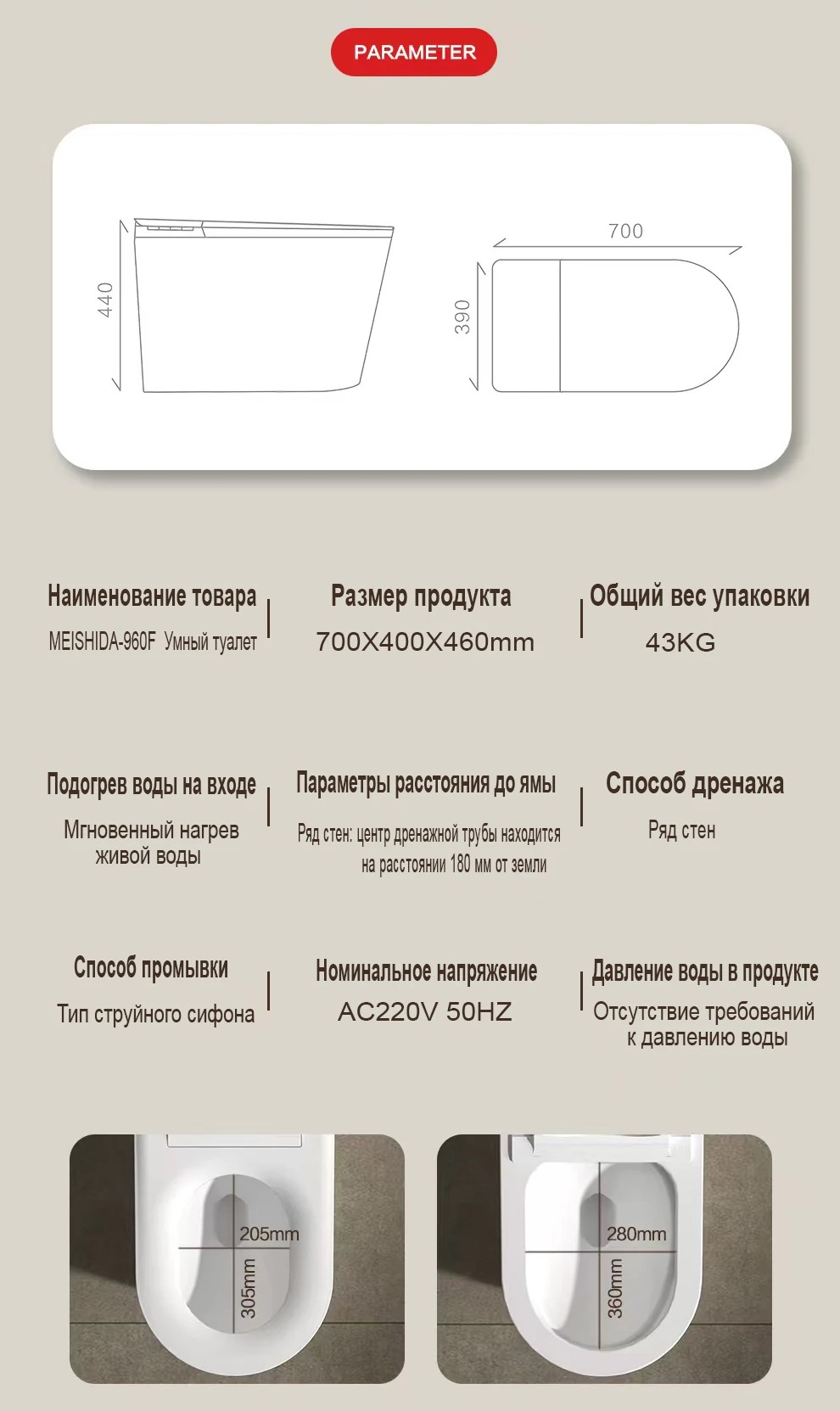Унитаз умный MEISHIDA-960F, 70см, УФ, удаление накипи, арома, русский голос