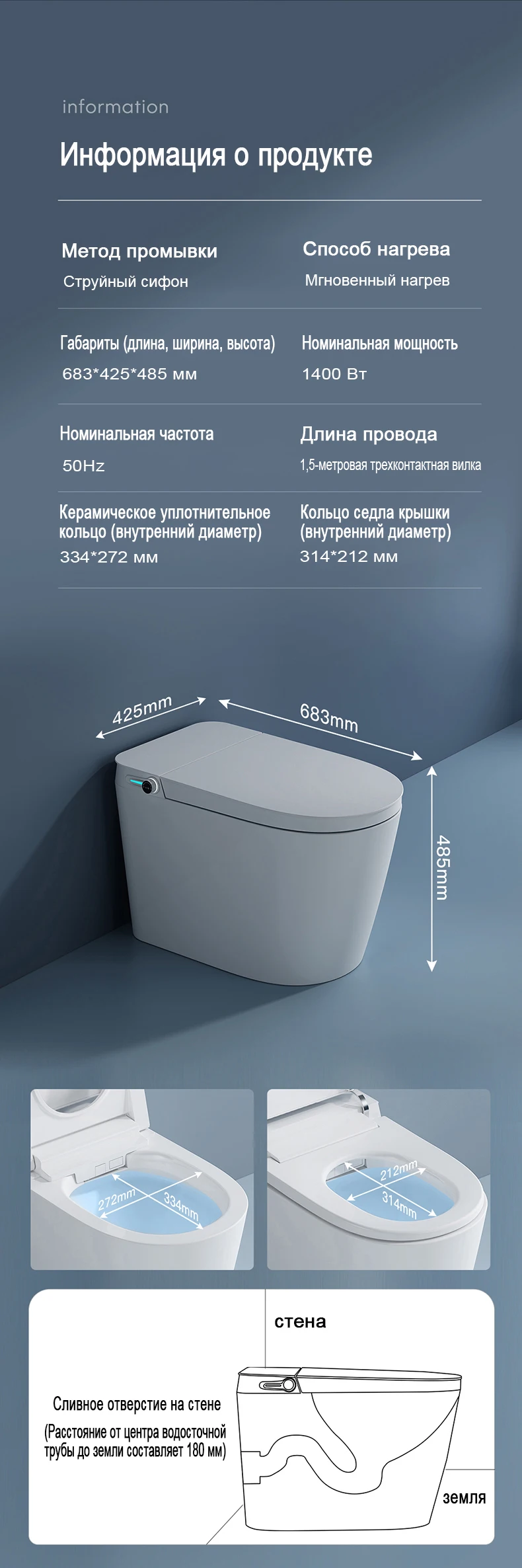 Унитаз умный MEISHIDA-U8A, 68.3см, пена, бачок, большое сиденье, русский голос2026В избранноеВ сравнение ОсновныеТорговая маркаMEISHIDAНаправление выпускаВ стену (Р-Тrар)ОпцииАвтоматическое поднятие крышкиБачокС баком и компрессоромНапряжение220 ВВсе характеристики 39 999 ₽ 99 999 ₽ -61% Фабрика (Китай): В наличии FBO / СВХ Приморье (для отправок по РФ): по запросу FBS / Красноярск: по запросу – + Купить ОбзорХарактеристикиОтзывы (0)ALIEXPRESS ОсновныеТорговая маркаMEISHIDAНаправление выпускаВ стену (Р-Тrар)ОпцииАвтоматическое поднятие крышкиБачокС баком и компрессоромНапряжение220 ВМощность1300 ВтВлагозащитаIPX4Длина68.4 смЦветБелыйВес без упаковки43 кгПроизводствоКитайГарантия производителя12 мес.Отзывов нет