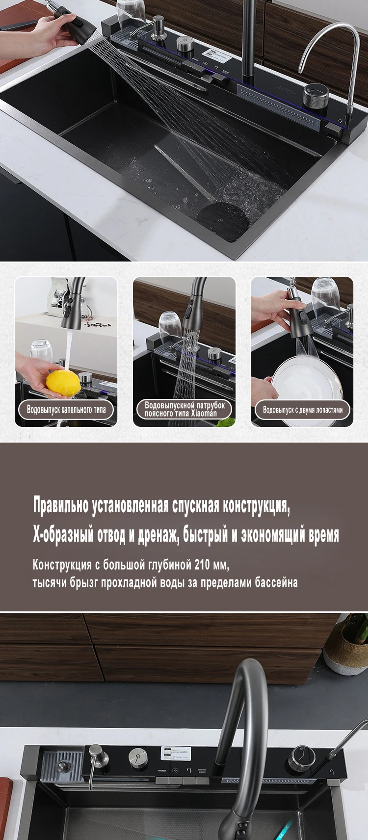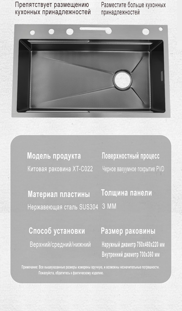Кухонная мойка Meishida (XT-C022), нержавеющая сталь, краны латунь, оригинал